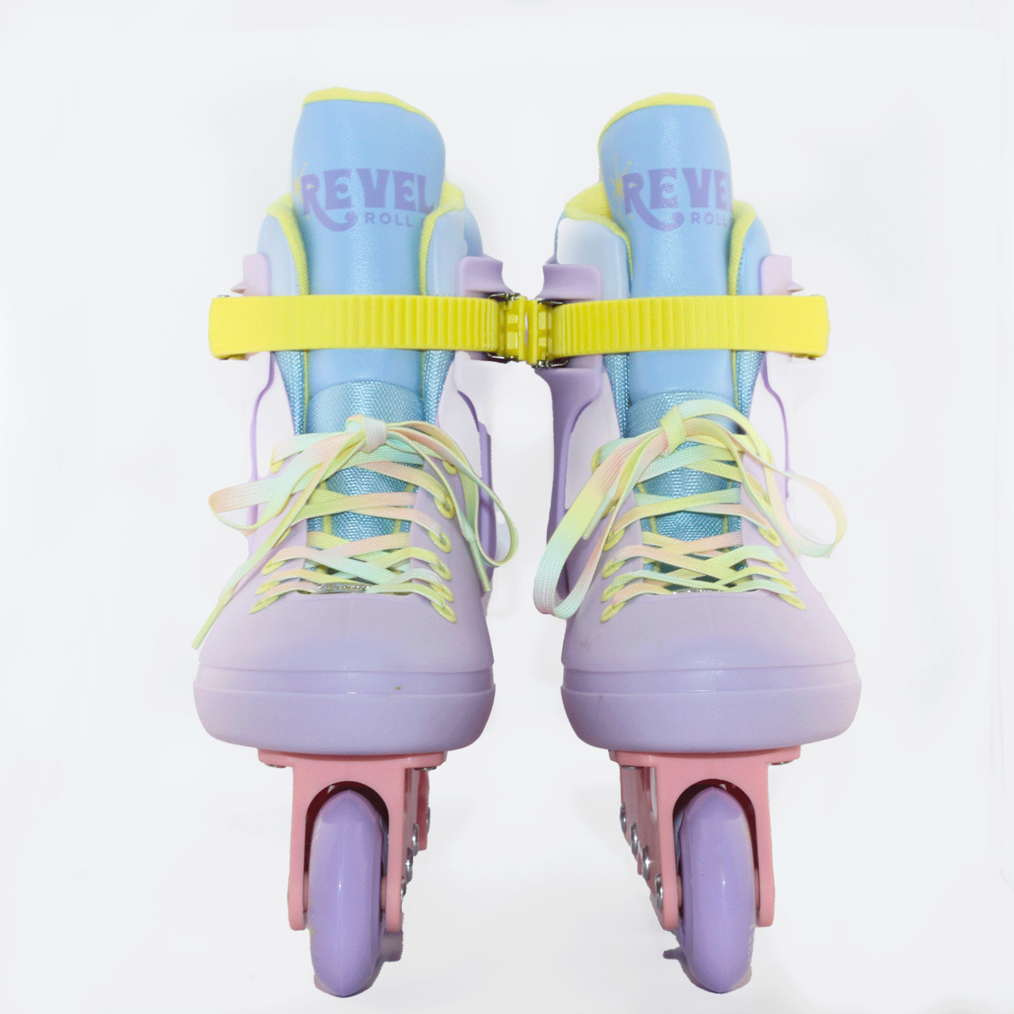 Carve a path around town with the Revel Kids' Adjustable Inline Skates. The outer resin boots offer durability, while padded boot liners provide comfort and breathability. An EZ Twist knob enables adjustable sizing, and 70 x 24 millimeter 84A wheels deliver a smooth ride.